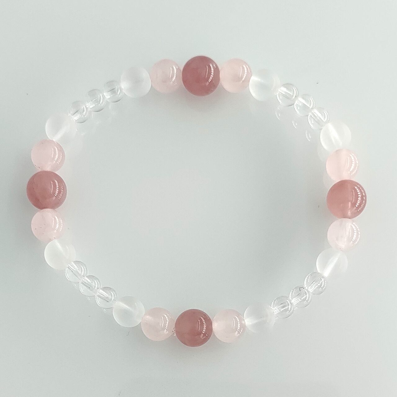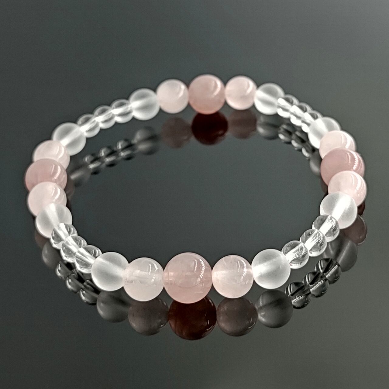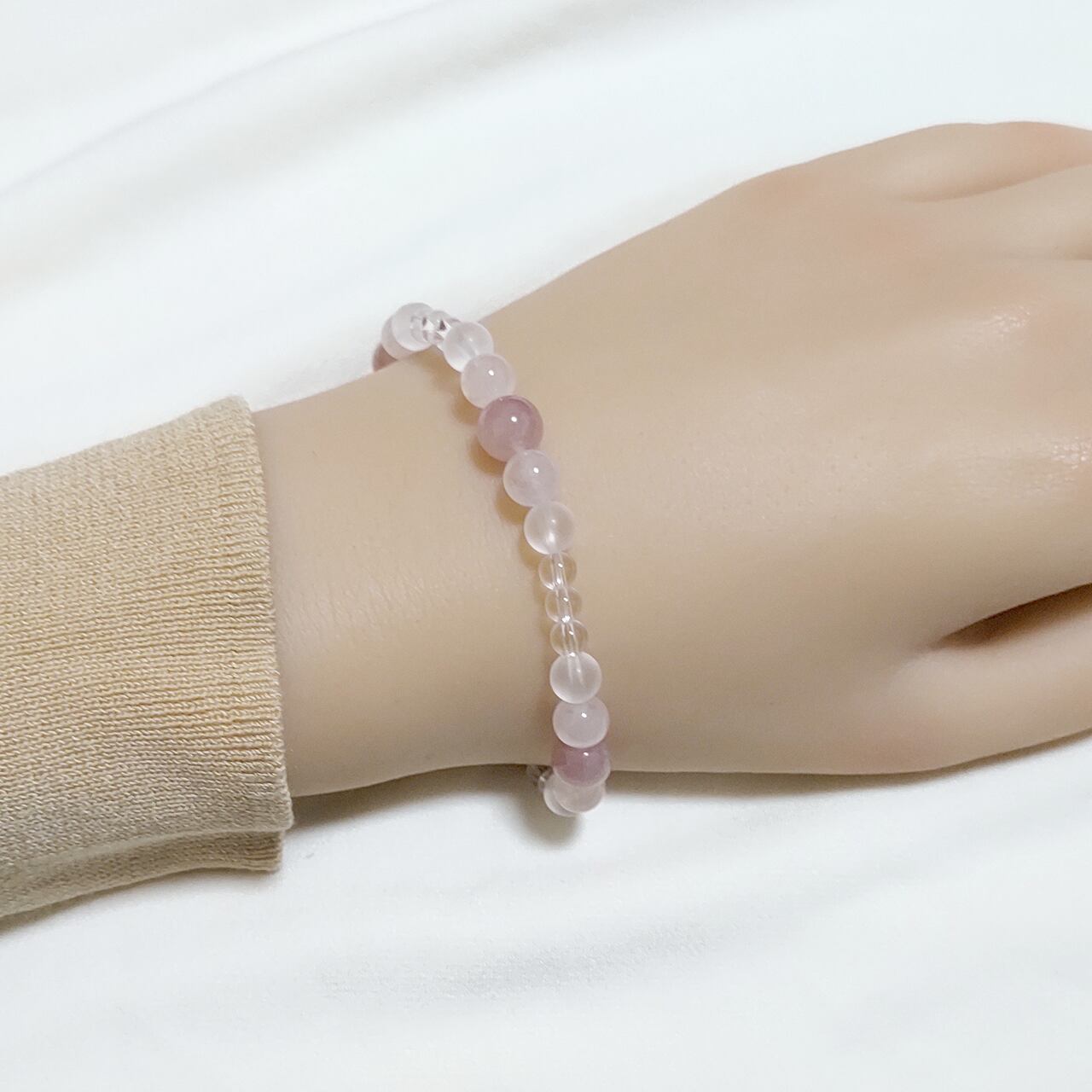 心を惹きつける、B010 ローズクォーツ×水晶の天然石ブレスレット